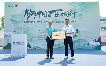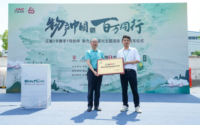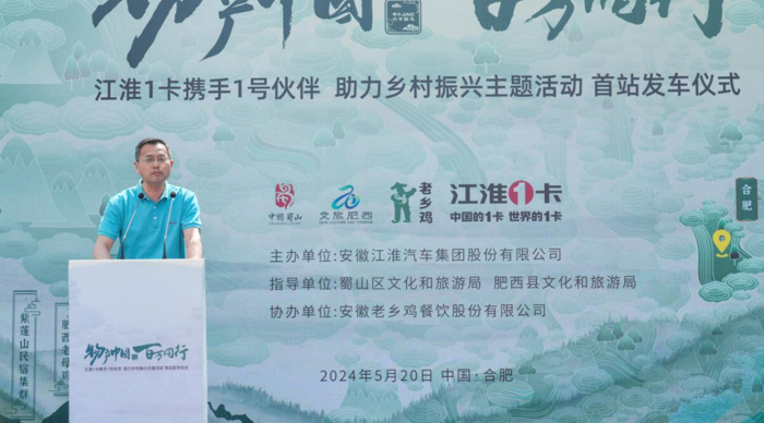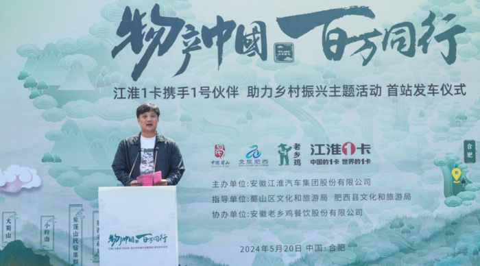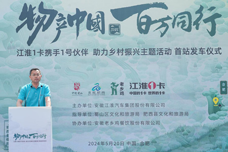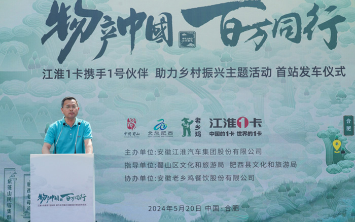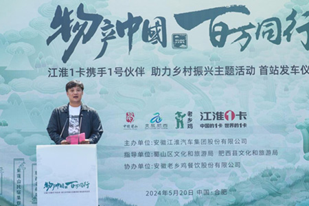 5月20日,江汽集團迎來建廠60周年紀念日。甲子JAC,1卡獻禮!江淮1卡“物產中國 百萬同行”活動安徽站首站發車儀式在安徽省合肥市老鄉雞中央廚房舉行。活動現場,安徽省合肥市蜀山區文化和旅游局、安徽省合肥市肥西縣文化和旅游局、安徽著名餐飲品牌老鄉雞、江淮1卡,以及來自全國各地的江淮1卡榮耀1號伙伴、媒體朋友們齊聚一堂,共同講述“國家地理標志保護產品——老鄉雞”的故事,助力鄉村振興。