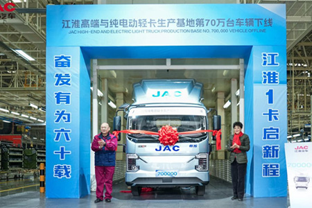 查看詳情>>近日,在江淮1卡高端與純電動輕卡生產基地內,江淮1卡第70萬臺車輛正式下線。從第1臺到第70萬臺高端輕卡下線,江淮1卡高端與純電動輕卡生產基地經歷了6年零5個月,在打造世界級品牌的道路上,江淮1卡讓發展之路越走越寬、金字招牌越擦越亮。
