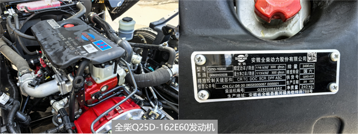 坦克版車型則配備云內YN25PLUS160B發動機(114kW/400N·m,滿足京六排放標準),采用緊湊化輕量化的設計,集成領先的缸內預熱技術,顯著優化低溫啟動性能。該發動機動力強勁,峰值扭矩大,在各種氣候條件下都能快速響應,動力表現領先同級產品。法士特C8J45T帶同步器的8檔箱,換擋操作輕便精準,變速箱自帶取力器,實現平順的動力輸出和高效的取力作業,特別適合清障作業的工況需求。